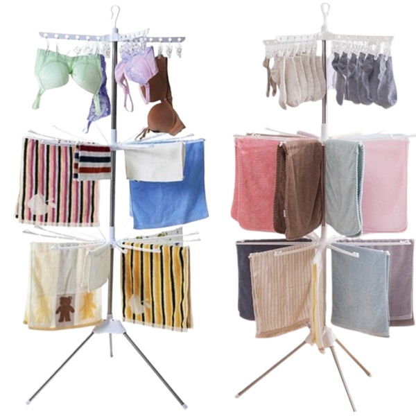 Pachet 1+1 Suport Uscator Rufe Vertical 3 Nivele Pliabil, Compact si Eficient, Portabil si Usor de Folosit