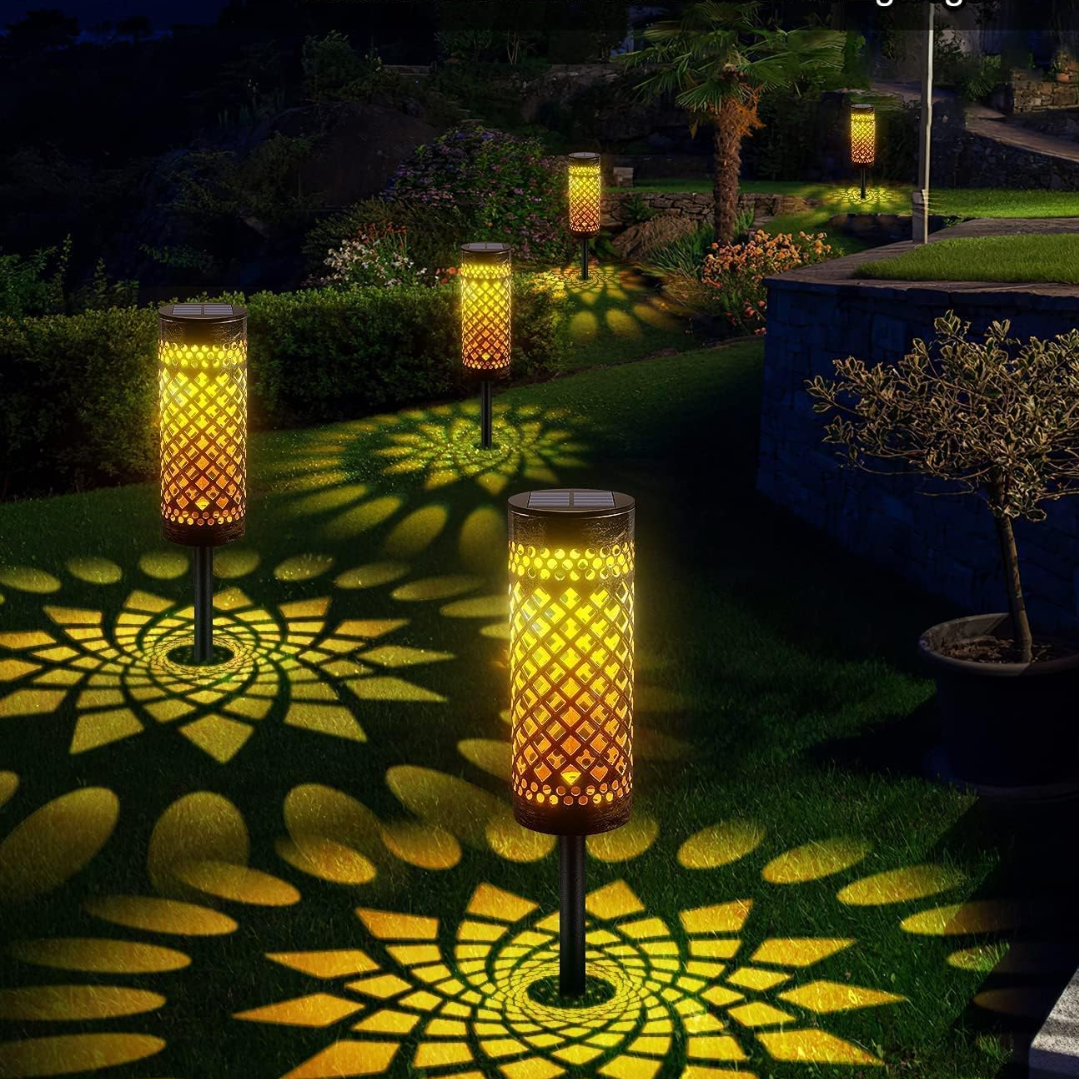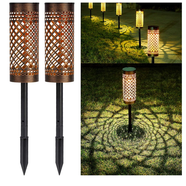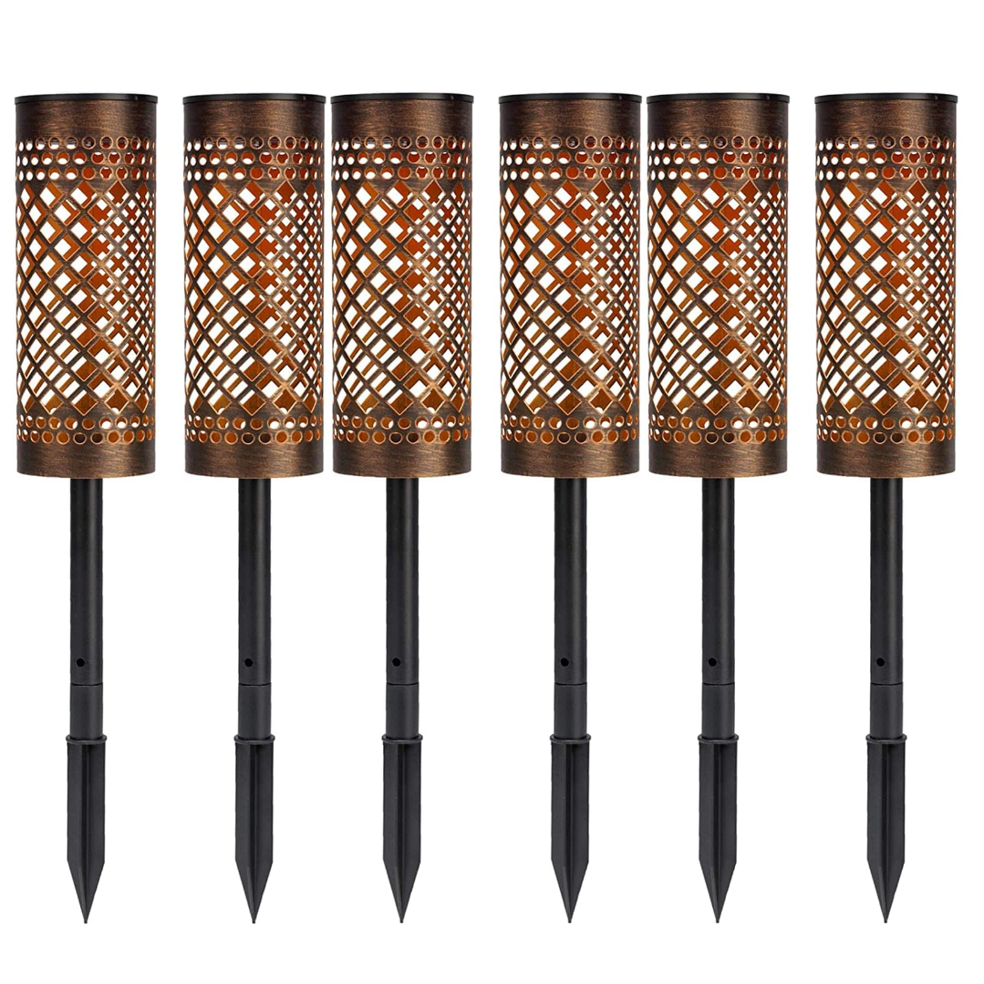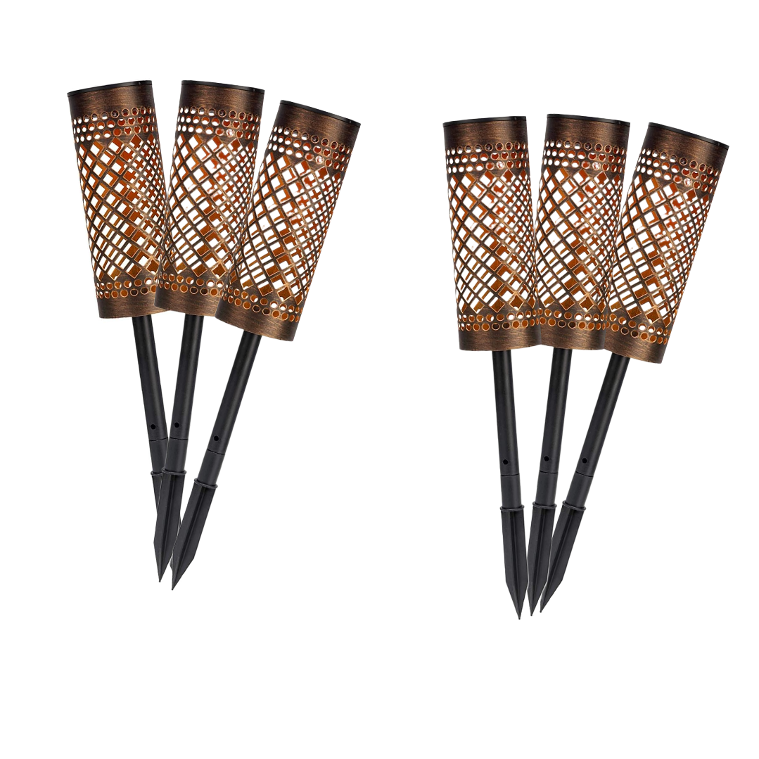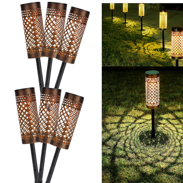 Pachet de 6 lampi solare pentru exterior, tip torta, metalice