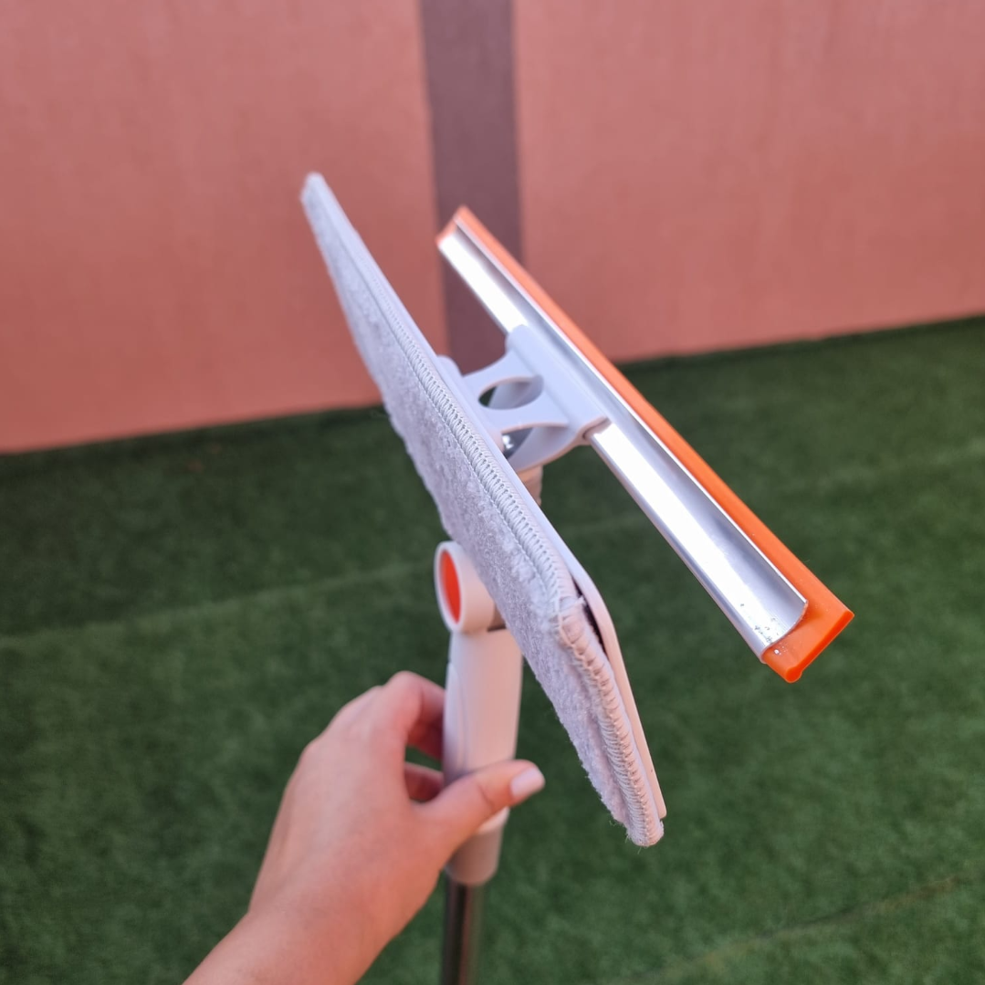 Pachet Mop cu laveta microfibra si racleta din silicon, rotire 180 grade, maner telescopic + 2 rezerve