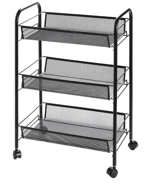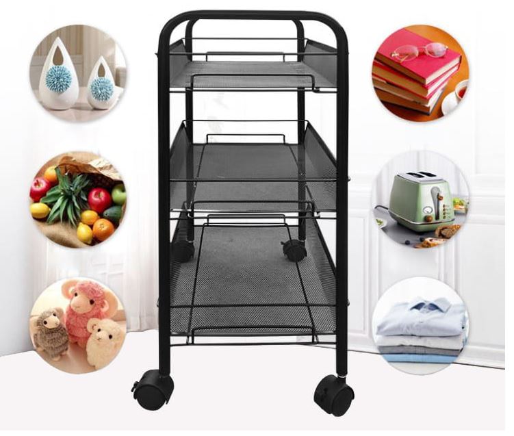 Raft metalic multifunctional, mobil, cu 3 polite, negru