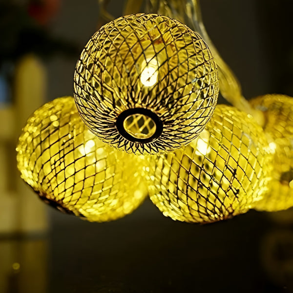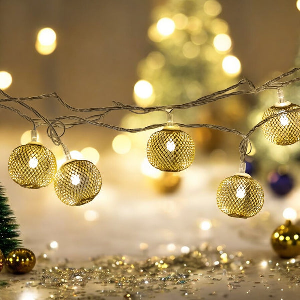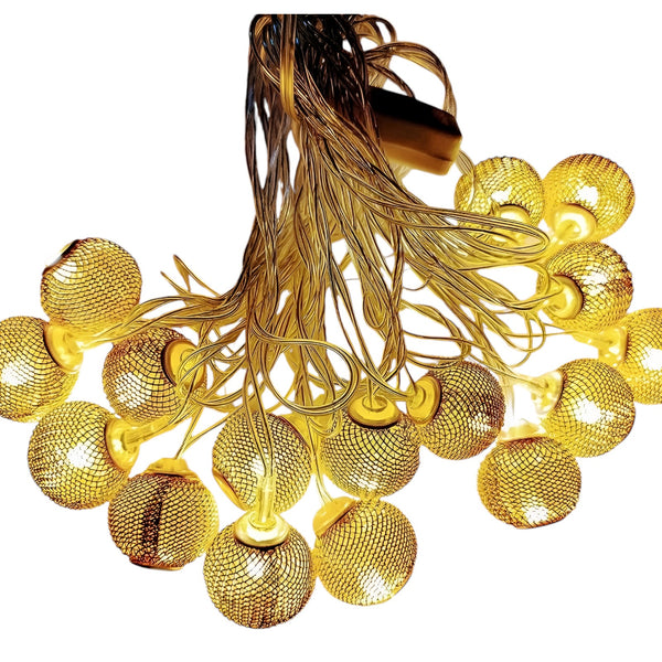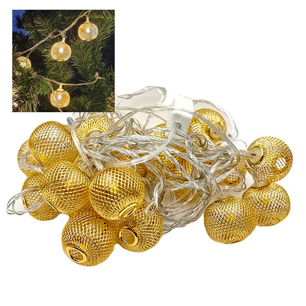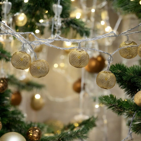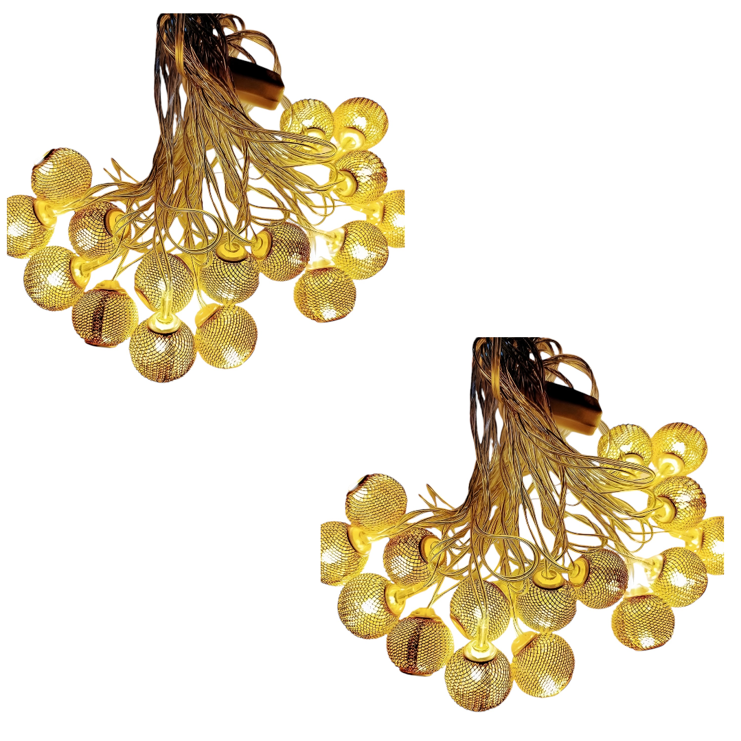 Set 2 Instalatii LED pentru Craciun cu 20 de globuri aurii, culoare alb cald