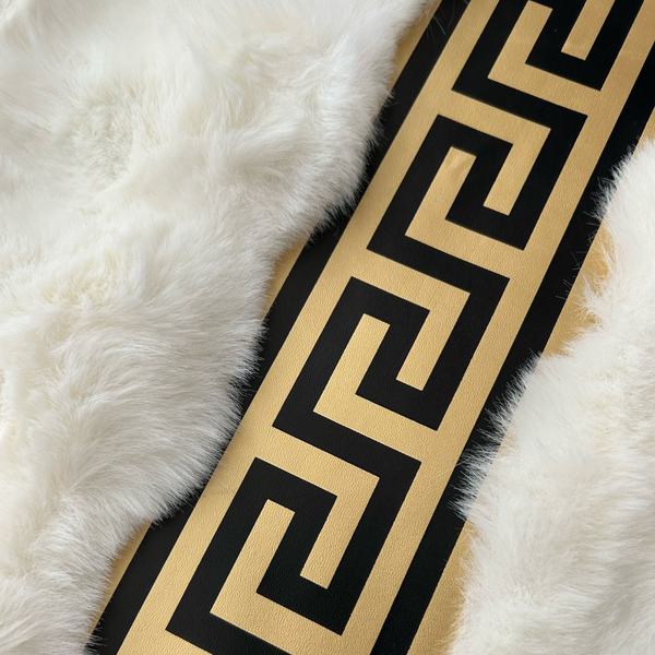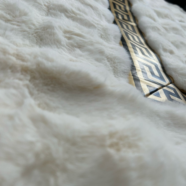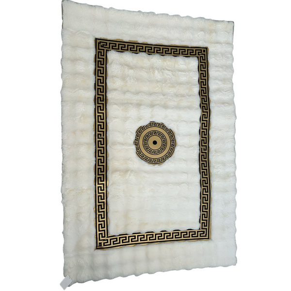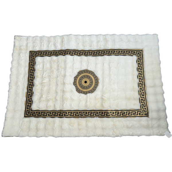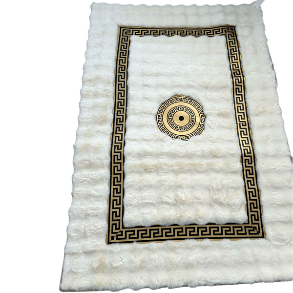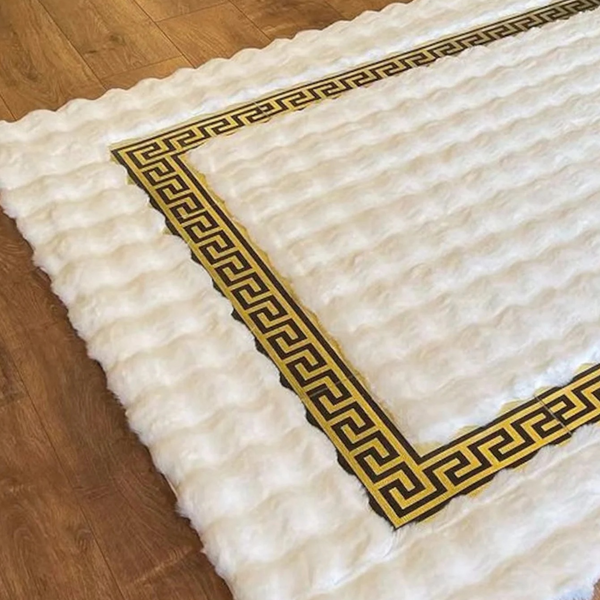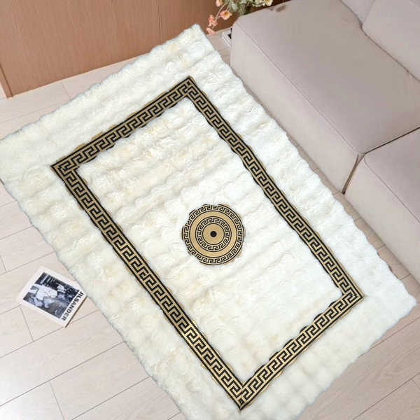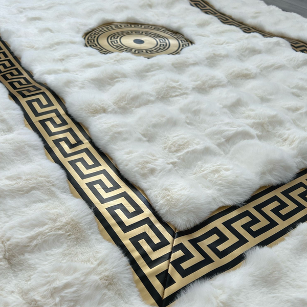 Covor Regal Alb-Auriu din Blană Artificiala Eleganta, Confort și Rafinament pentru un Decor Impresionant