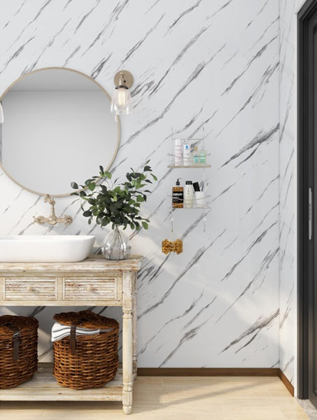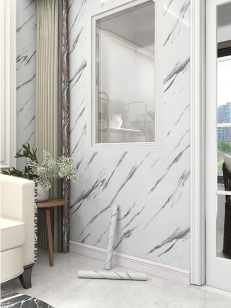 Folie autoadeziva pentru perete, tip marmura alba, 0.6 x 3 m