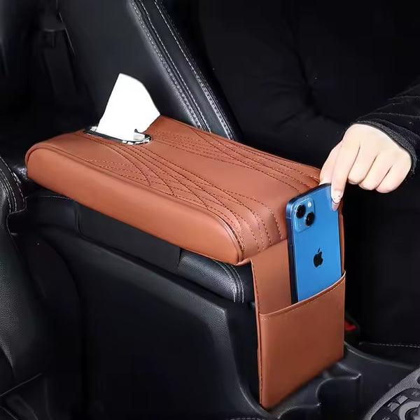 Husa universala pentru cotiera auto, cu spatiu pentru servetele si buzunar pentru depozitare