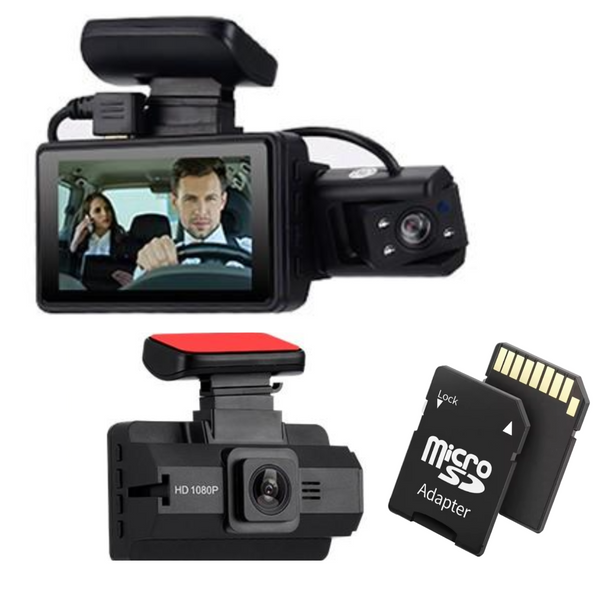 Pachet promo! Camera auto bord 1080P HD, ecran de 7,6 cm, cu unghi larg de vedere nocturnă si senzor G + Card memorie 32 GB