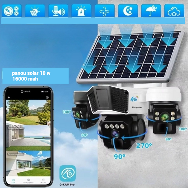 Pachet! Camera de Supraveghere Solara 4G TL3 3 Senzori PIR, Baterie 16000mAh, Viziune Nocturna, 10w si Card de memorie 32 GB
