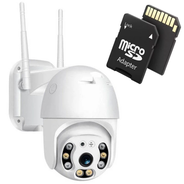 Pachet promo! Camera de supraveghere Wifi exterior, rotativa, cu senzor de miscare si Card memorie 32 GB
