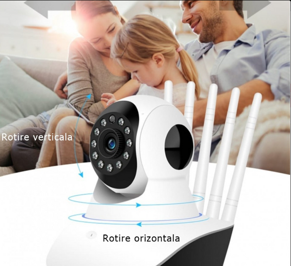 Pachet promo! Camera supraveghere wifi cu 5 antene, cu microfon si difuzor, sunet bidirectional si Card memorie 32 GB