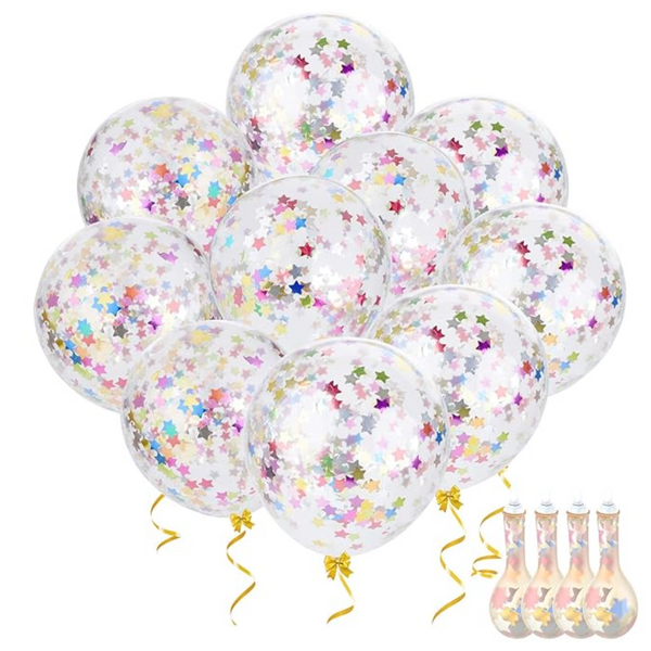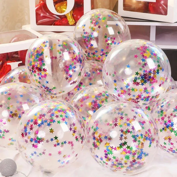 Set 5 Baloane Latex Transparente Umplute cu Confetti Stelute Colorate Efect Magic pentru Petreceri!