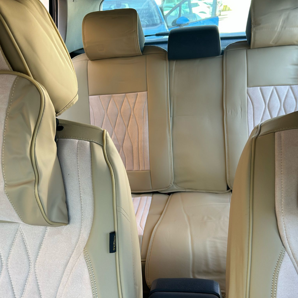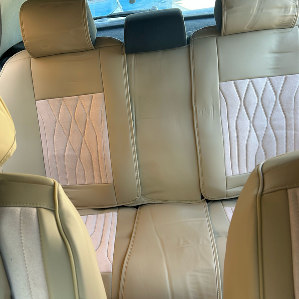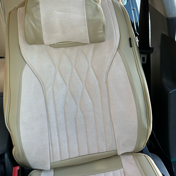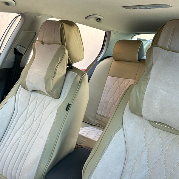 Set complet Huse pentru scaunele auto, fata spate, culoare bej, 2 perne pentru tetiere