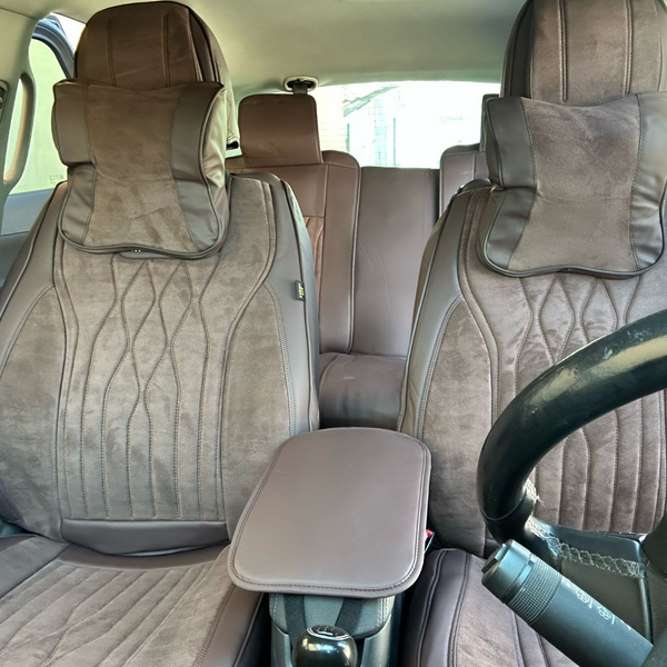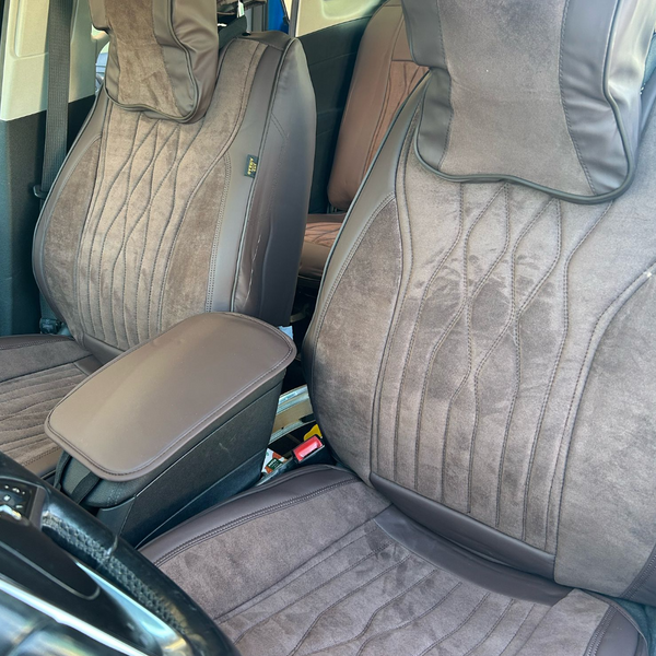 Set complet Huse scaune auto, fata spate, 2 perne pentru tetiere, maro