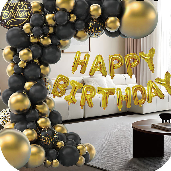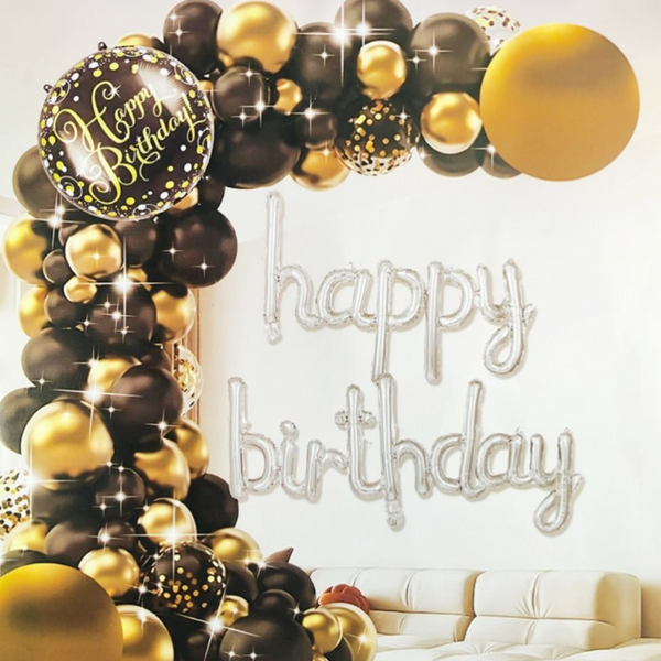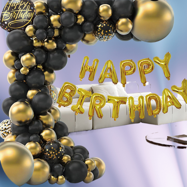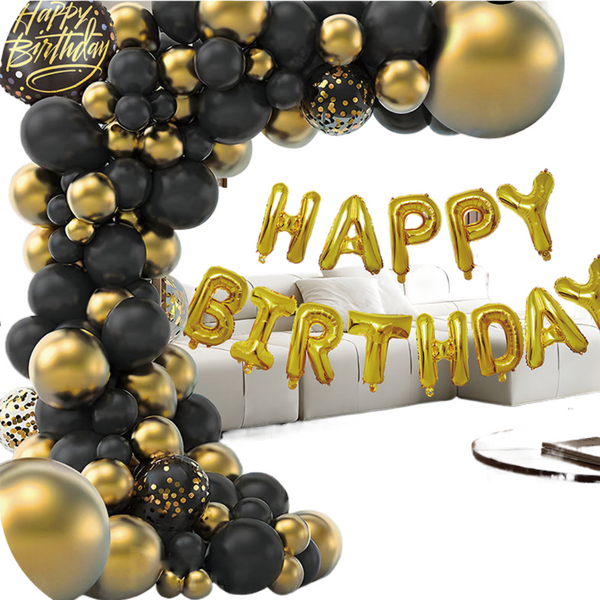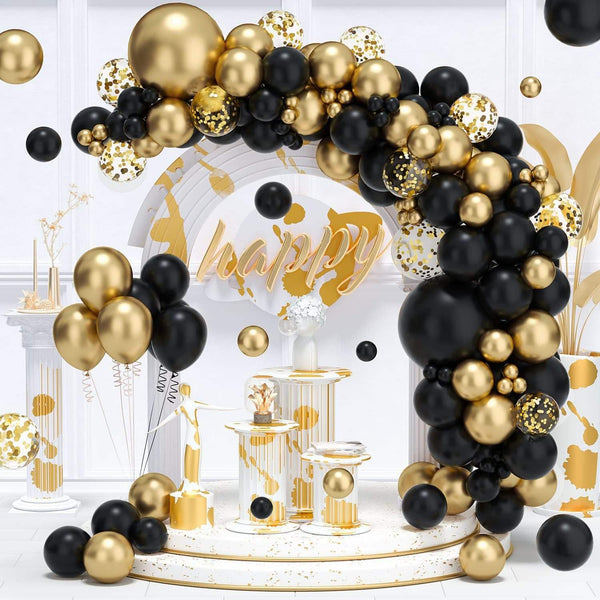 Set Decor Party Arc Ghirlandă 83 Baloane Auriu, Negru + Banner, Ideal pentru Petreceri aniversare