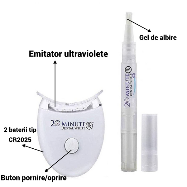 Set pentru albirea dintilor in doar 20 minute cu dispozitiv LED si formula avansata