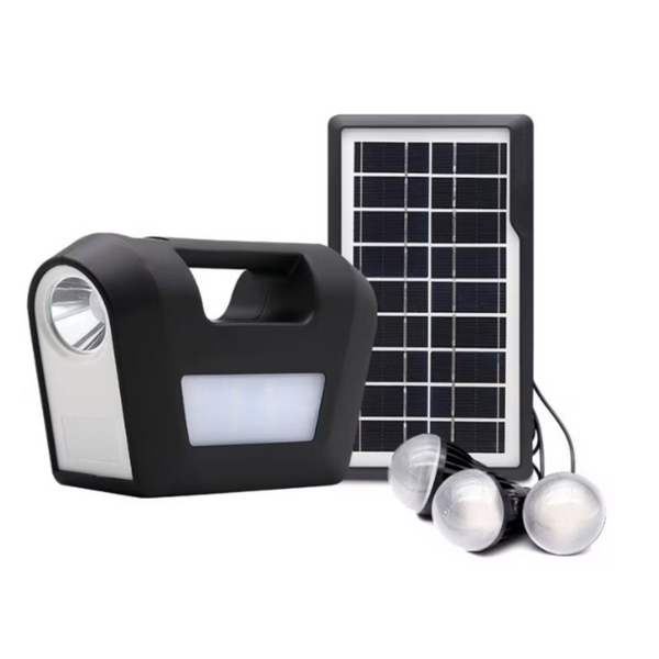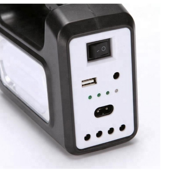 Fie ca sunteti intr-o zona izolata, in camping sau in timpul unei pene de curent, kit-ul solar va ofera toate facilitatile de care aveti nevoie: iluminat portabil prin intermediul celor 3 becuri cu LED-uri SMD, cu ajutorul lampi U si a lanternei cu led 1W complet echipata si incarcare telefoane mobile si alte dispozitive de la acumulatorul de 6V 4Ah inclus in sistem.