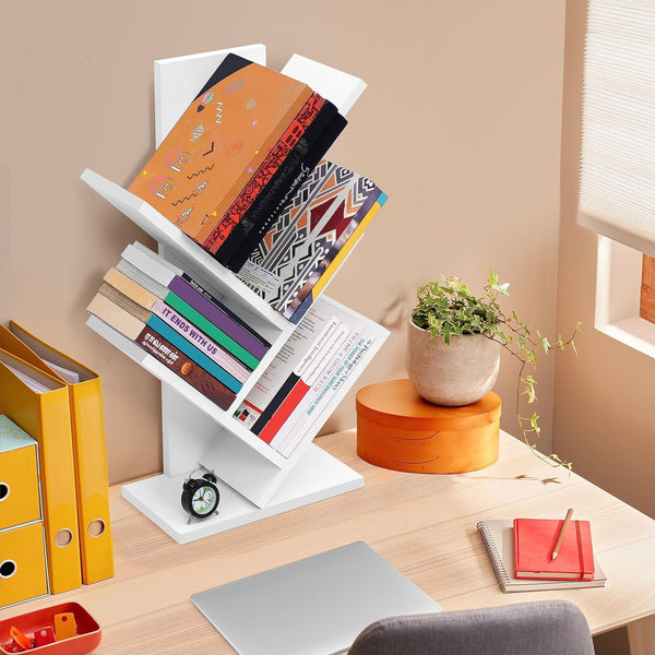 Raft modern pentru depozitare carti, organizator din lemn cu 4 niveluri, alb