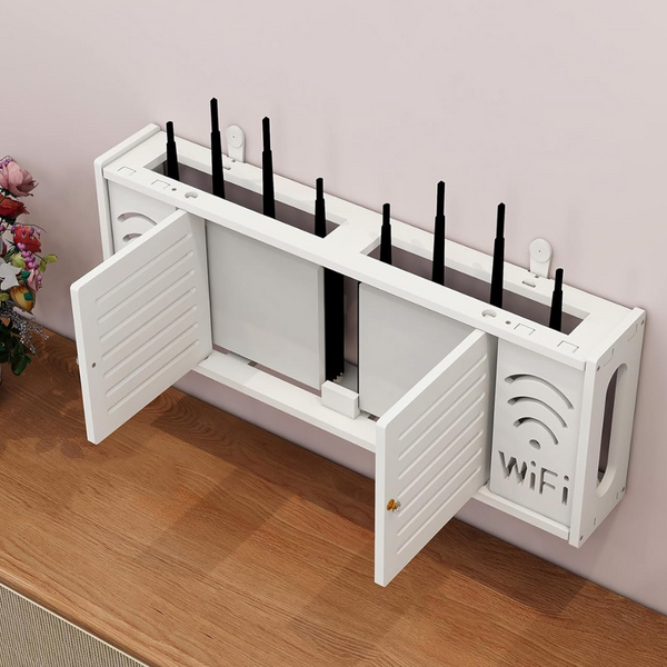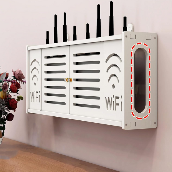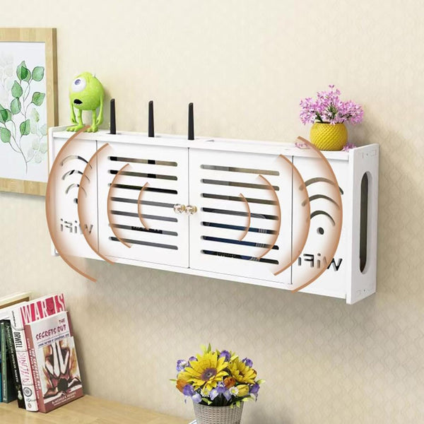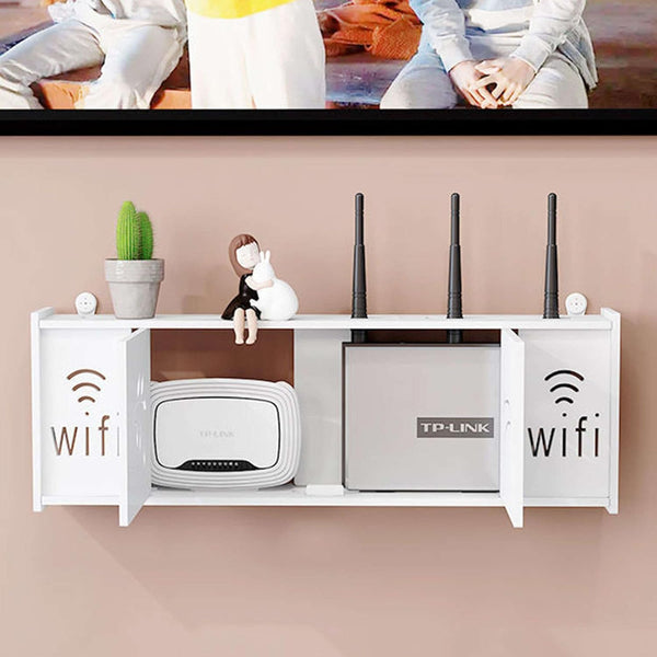Îmbunătățește-ți spațiul cu raftul, un organizator de perete practic și elegant, perfect pentru a ascunde routerele WiFi și cablurile într-un mod estetic!