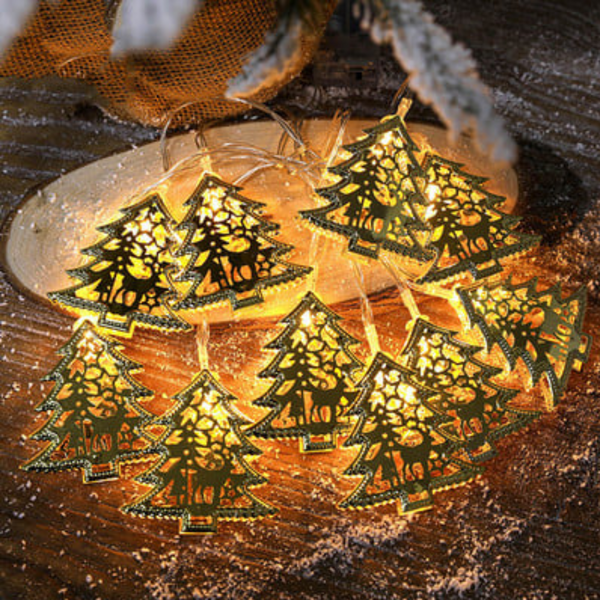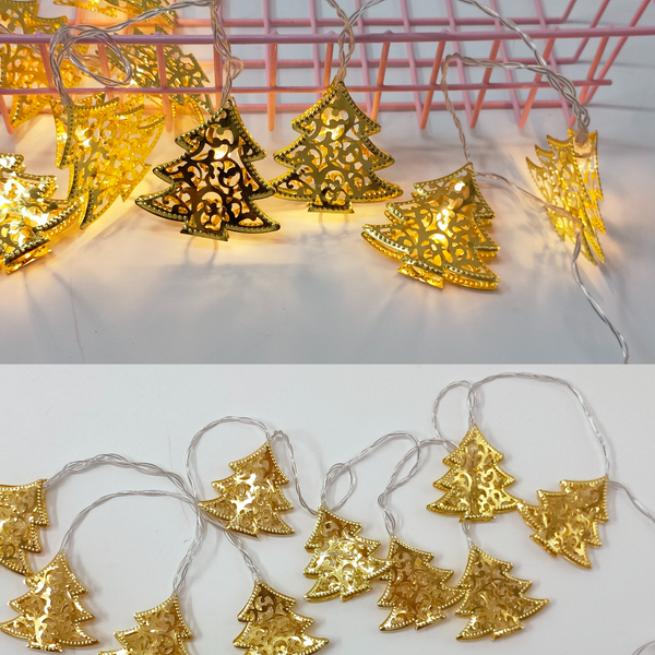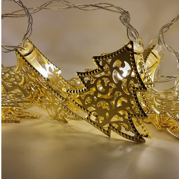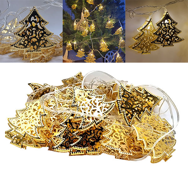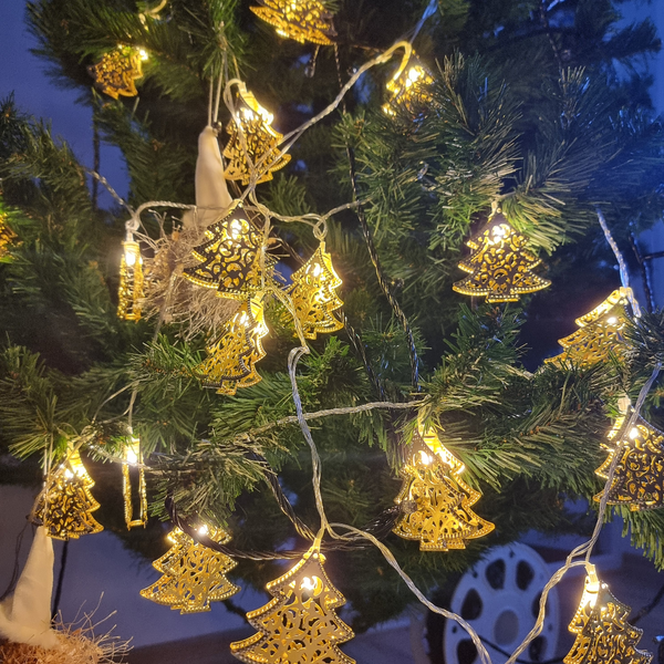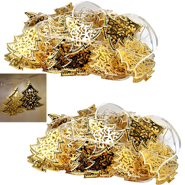 Set 2 Instalatii LED pentru Craciun cu 20 de braduti aurii, culoare alb cald