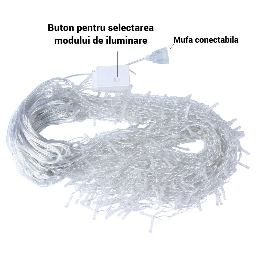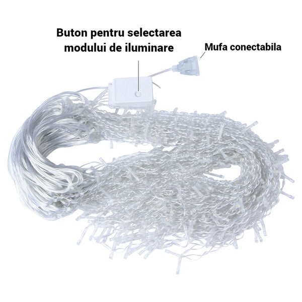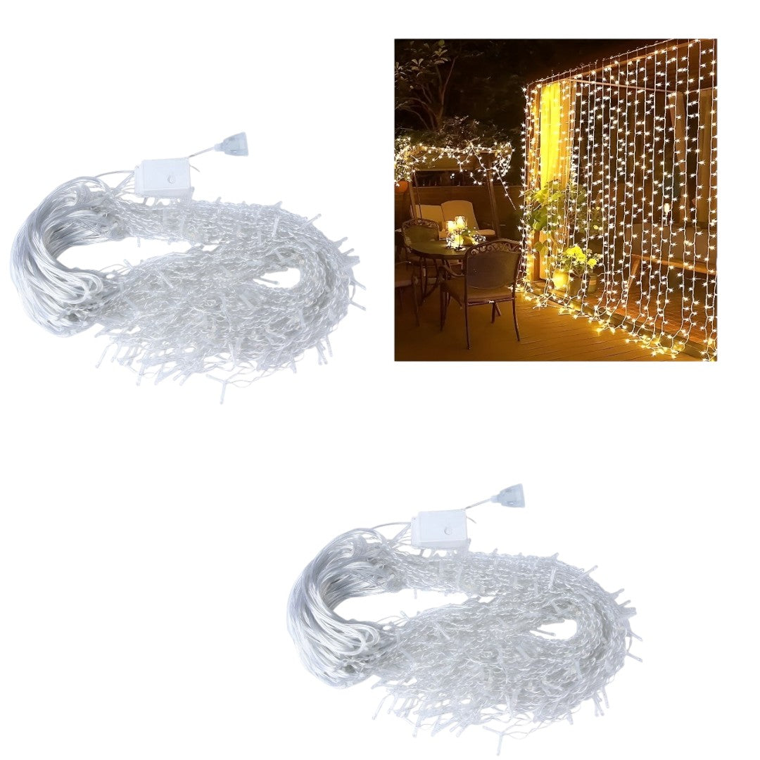 Set 2 Instalatii tip perdea franjuri Alb Cald, 12 m