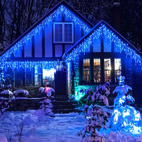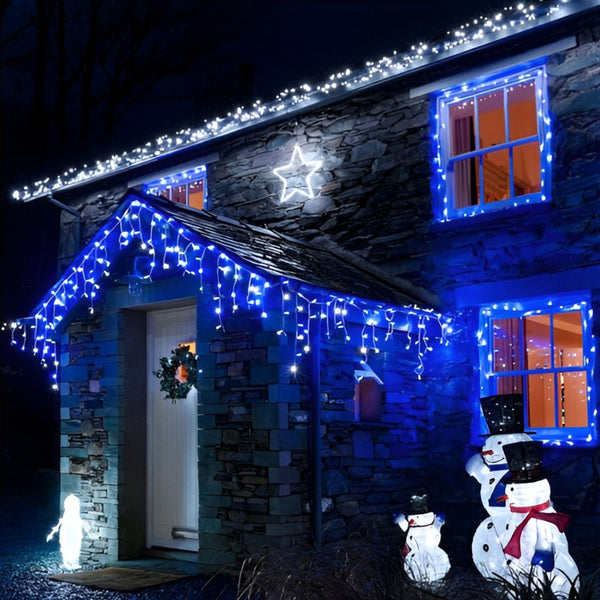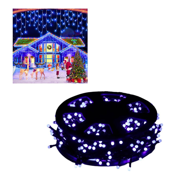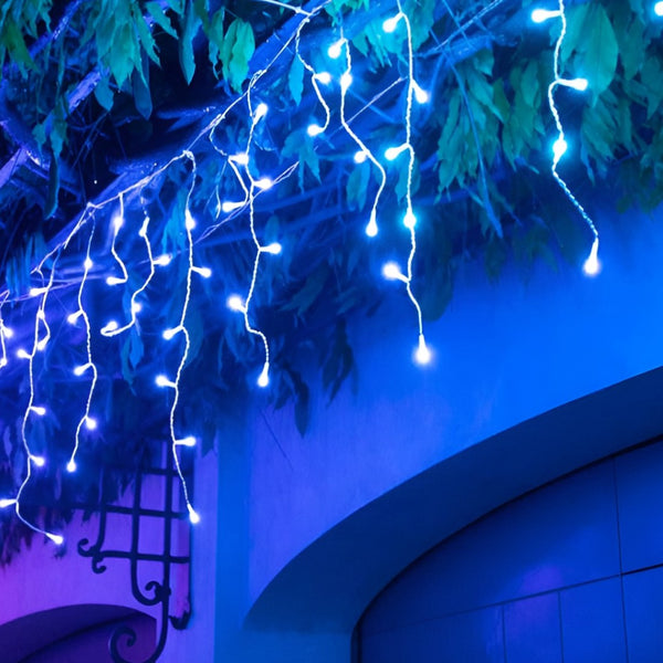 Set 2 x Instalatie LED tip franjuri 12m, de exterior, albastra