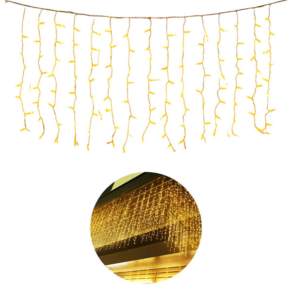 Set 2 x Instalatie LED tip franjuri 8m, de exterior, lumina alba calda