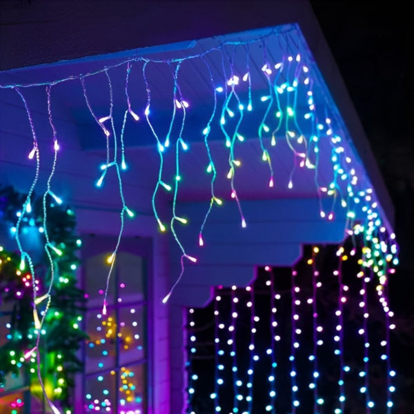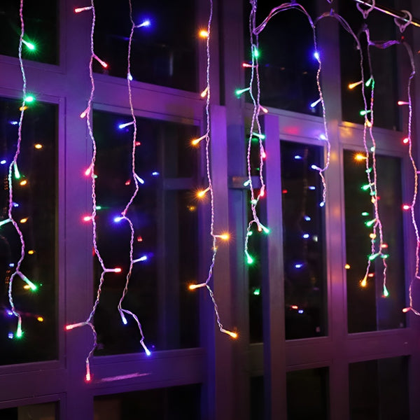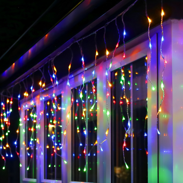 Set 2 x Instalatie LED tip franjuri 8m, de exterior, multicolora