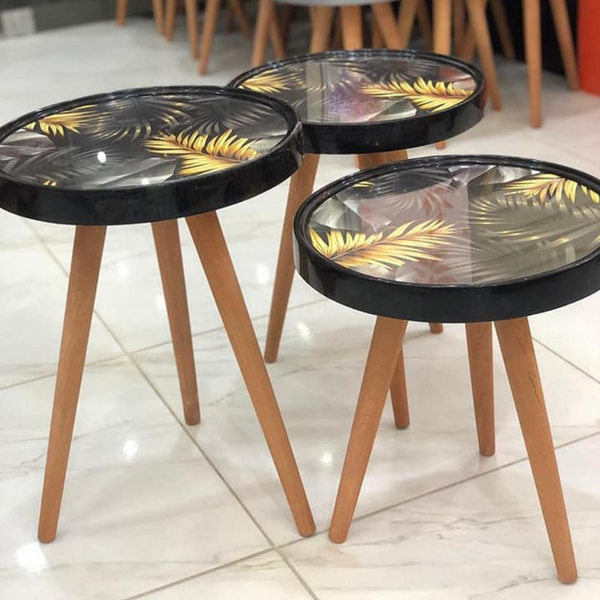Set 3 Măsuțe Cafea – Mărimi Diferite, Design Tropical, Blat Negru cu Auriu, Picioare Lemn Natural, Stil Elegant și ModernDescriere produsAdaugă un plus de stil și rafinament locuinței tale cu...VEZI DESCRIEREA