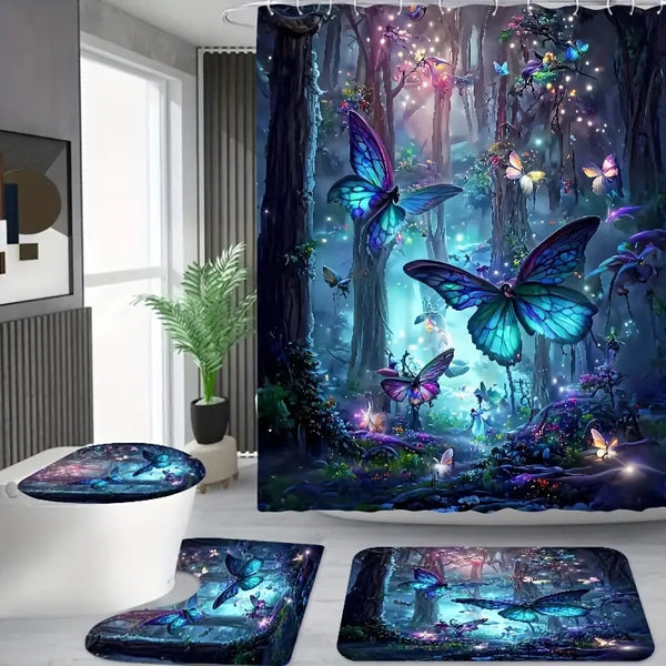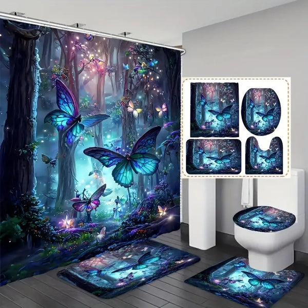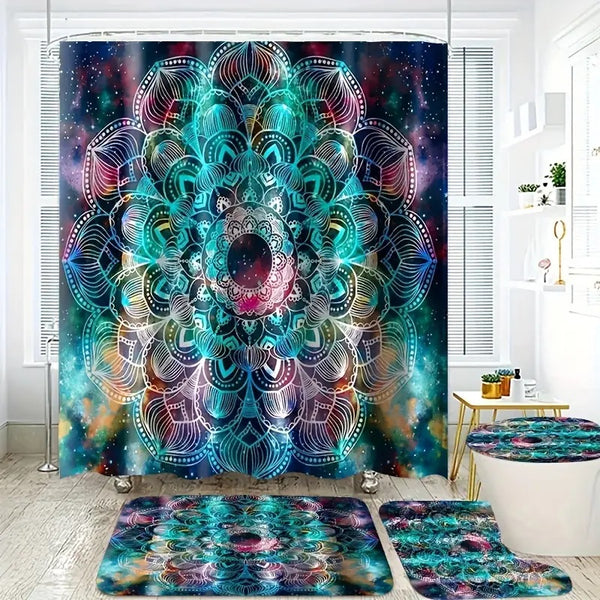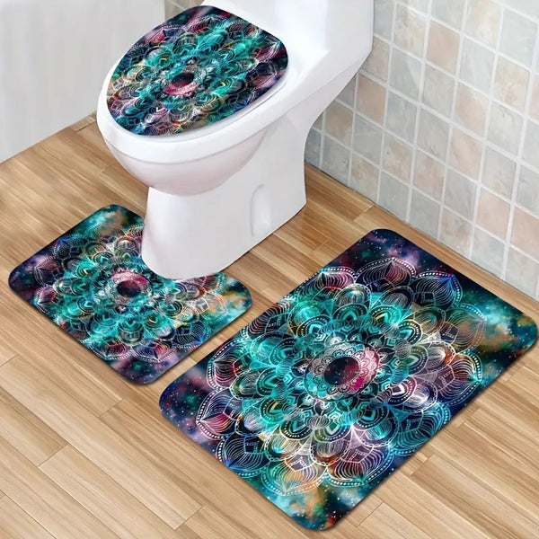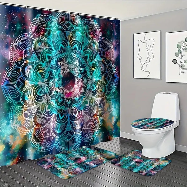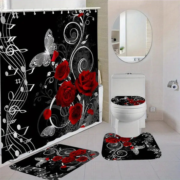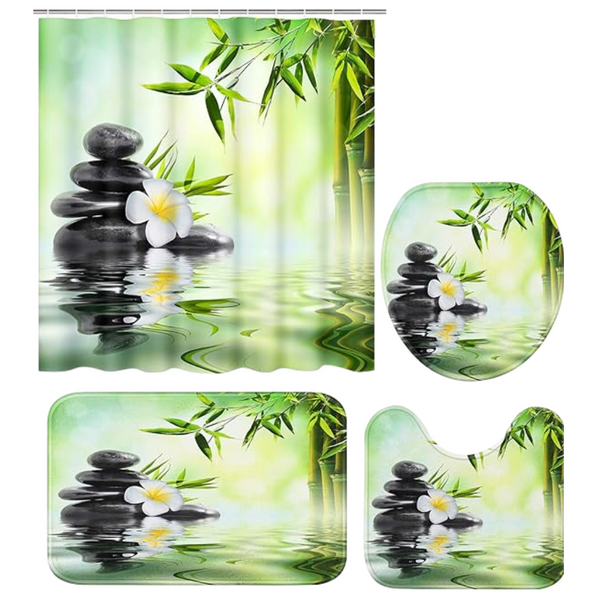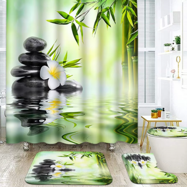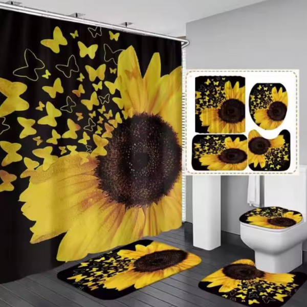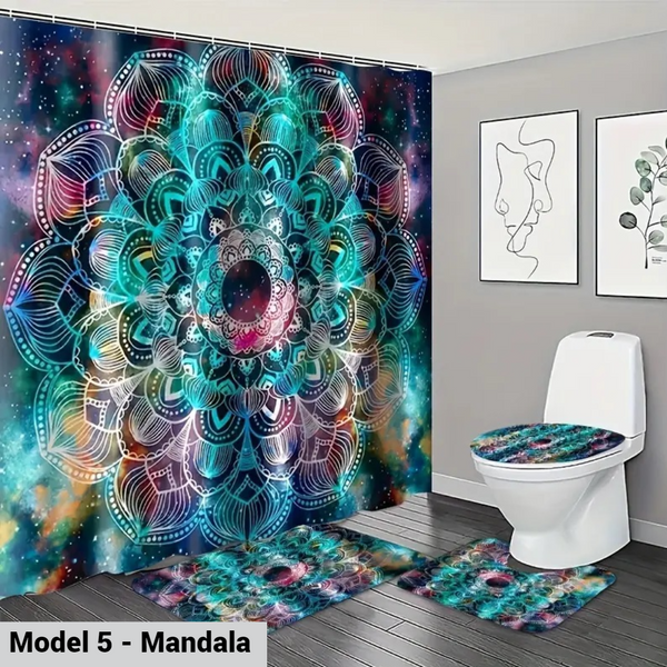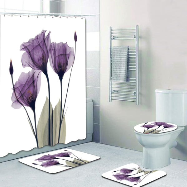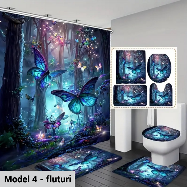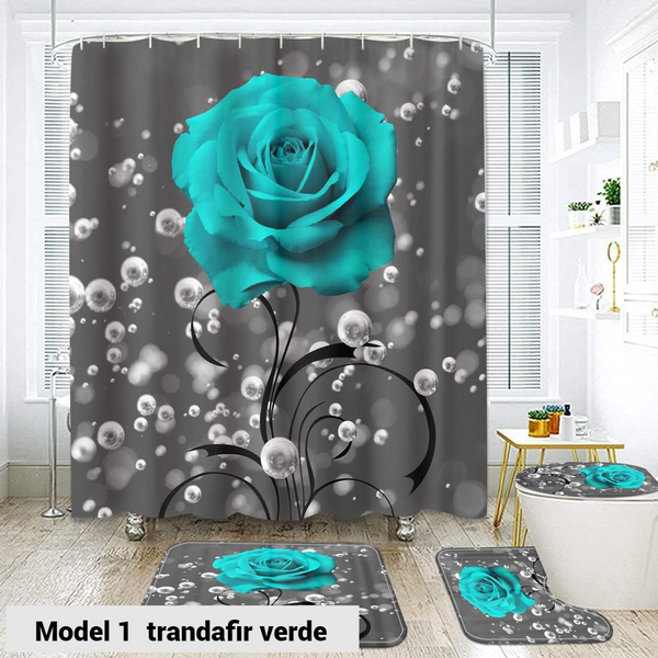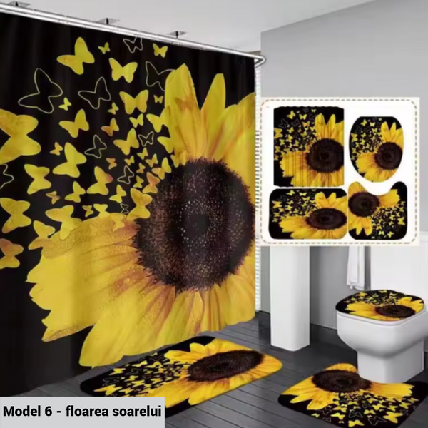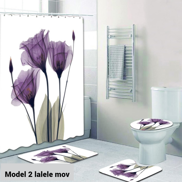 Set baie 4 piese: perdea, covorase si husa de toaleta