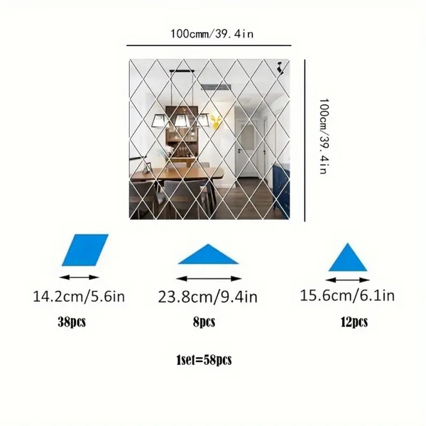 Set oglinzi acrilice, autoadezive, 58 de piese