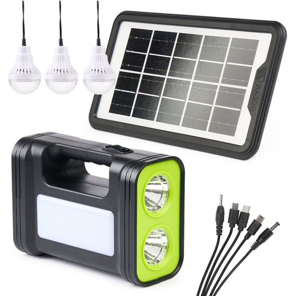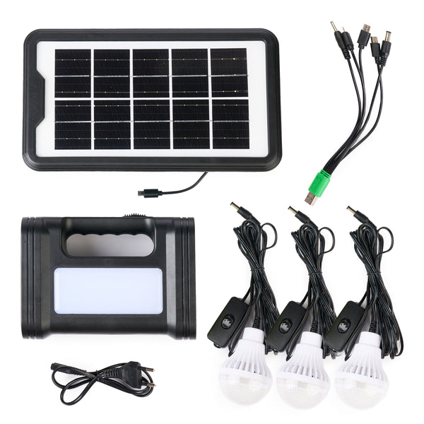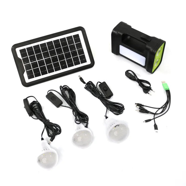 Sistem de iluminat solar GDPLUS, 3 becuri LED, cablu de incarcare 5-in-1 GD-17