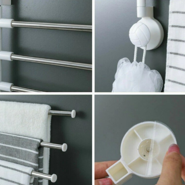 Suport cu ventuze de prindere pe perete, pentru 4 prosoape