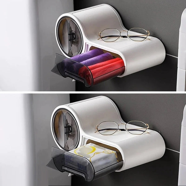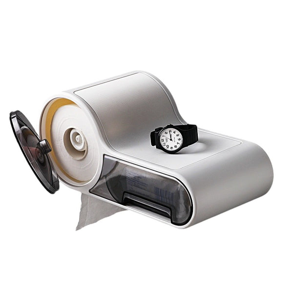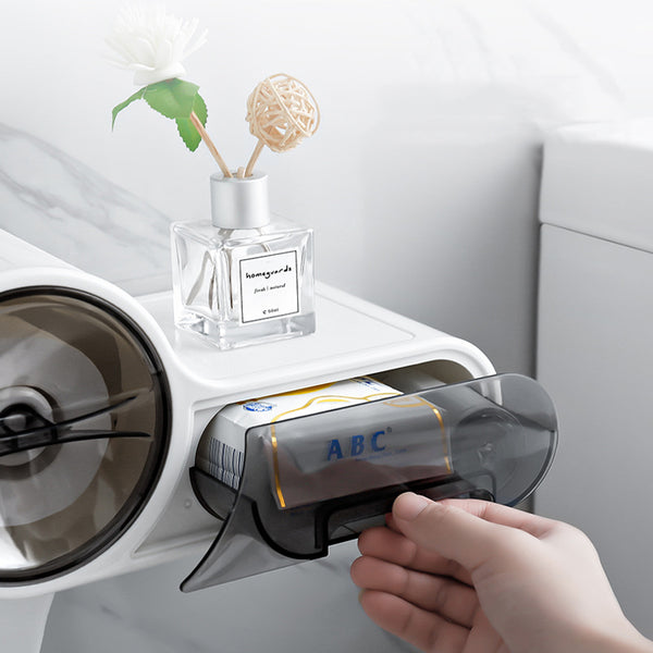 Suport de perete pentru hartie igienica si telefon, cu sertar