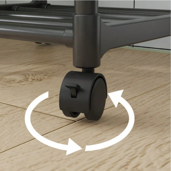 Acest organizator este echipat cu patru roți pivotante, ceea ce facilitează deplasarea sa atunci când doriți să curățați în jurul lui sau să îl repoziționați. Roțile sunt silențioase și nu zgârie pardoseala, asigurând o mutare ușoară și fără efort. De asemenea, sistemul de blocare asigură stabilitate atunci când organizatorul este în poziția dorită.