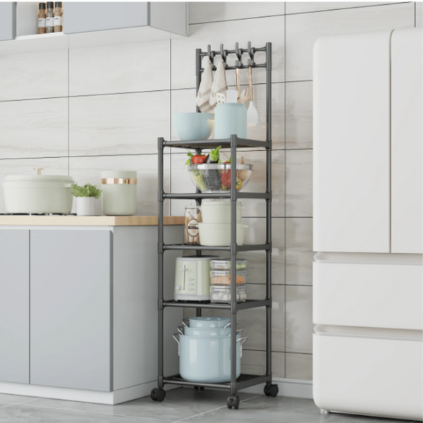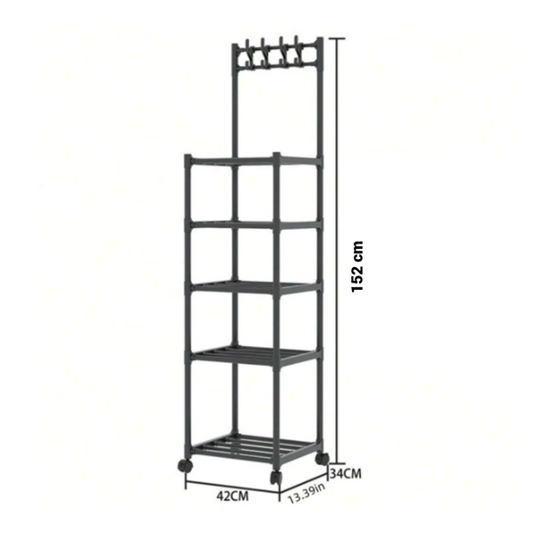 4. Design multifuncțional: Designul multifuncțional al acestui suport de depozitare poate fi plasat flexibil în orice cameră. Indiferent dacă aveți nevoie de spațiu suplimentar de depozitare în camera de zi, dormitor sau birou, acest suport este alegerea perfectă.