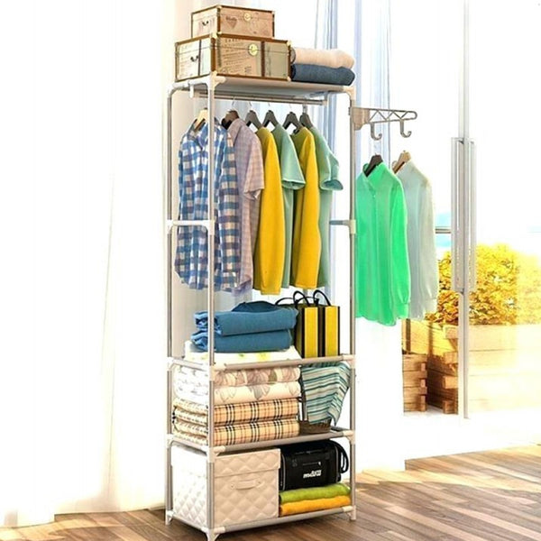 Suport multifunctional pentru haine si umerase, cu 3 rafturi